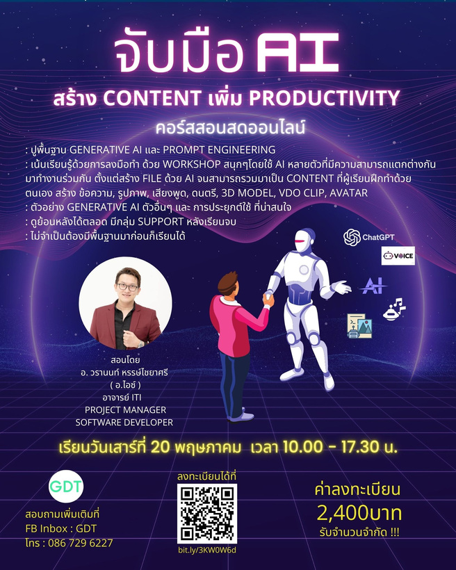 มีทั้งการเรียน แบบสอนสด Online , Onsite และ เรียนผ่าน VDO ผ่านทาง Platform ยอดนิยม